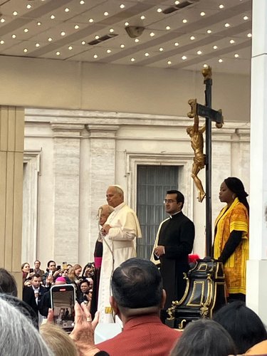 Ein wahrlich aufregender Tag liegt hinter uns oder mit anderen Worten: Dieser Tag war der Höhepunkt unserer Wallfahrt. Bereits um 6.45 Uhr ging es mit den Bussen von unseren Hotels aus los Richtung Petersplatz, denn heute stand die Generalaudienz mit Papst Leo XIV. auf dem Tagesprogramm. Neben den 357 Pilgerinnen und Pilgern aus Speyer wurden weitere 60.000 – 80.000 Gläubige erwartet. Eine unbeschreibliche Zahl, die in den vollen Straßen Roms spürbar war. Das Ziel war es natürlich: Papst Leo so nahe wie möglich zu kommen und eins oder auch zwei, oder vielleicht auch mehrere Fotos als Erinnerung mitnehmen zu können. Als wir auf dem Petersplatz ankamen, hieß es erstmal durchatmen: Die erste Hürde war geschafft. Und mit Blick auf die Uhr war auch gar nicht mehr viel Zeit, um einen guten Stehplatz zu ergattern. Kurz vor 10.00 Uhr erblickten wir ihn dann, wie er mit seinem Papamobil durch die abgesperrten Wege bis zum Petersdom fuhr. Ein wirklich besonderer Moment! Aufregung macht sich in der Gruppe breit, es wurde gejubelt und gerufen!